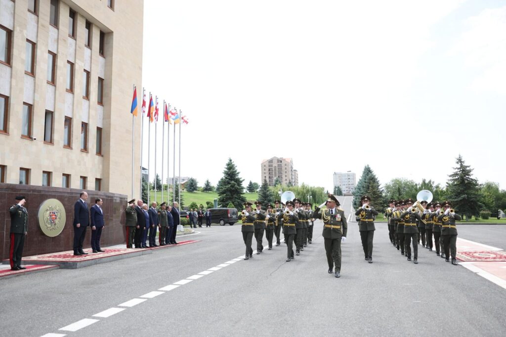 ՊՆ վարչական համալիրում տեղի է ունեցել Վրաստանի պաշտպանության նախարար Իրակլի Չիկովանիի դիմավորման հանդիսավոր արարողությունը՝ պատվո պահակախմբի և զինվորական նվագախմբի մասնակցությամբ։