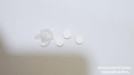 Զննությամբ ծառայողները հայտնաբերել են հանձնուքում առկա կիսավարտիքի գրպանում թաքցրած, առանց գրառման 3 սպիտակ, կասկածելի դեղահաբ։