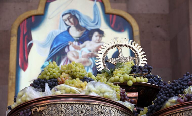 Վերափոխման տոնին՝ հավարտ Ս. Պատարագի, բոլոր եկեղեցիներում կատարվում է խաղողօրհնության կարգ: Բոլոր պտուղներից առավել օրհնվում է խաղողի ողկույզը, քանի որ Տերը խաղողի որթը ամենազորավոր ծառերից ավելի վեր բարձրացրեց և պատվեց առավել, քան մյուս տնկիները՝ Իրեն Խաղողի որթ անվանելով՝ ըստ այն խոսքի, թե. «Ես եմ ճշմարիտ որթատունկը» (Հովհ. 15:1):