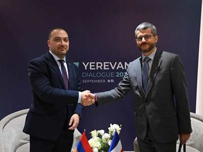 Սեպտեմբերի 10-ին «Երևանյան երկխոսություն» միջազգային համաժողովի շրջանակներում ՀՀ ԱԳՆ գլխավոր քարտուղար Դավիթ Կարապետյանը հանդիպում է ունեցել Ֆրանսիայի Եվրոպայի և արտաքին գործերի նախարարության գլխավոր քարտուղարի տեղակալ Դավիթ Բերտոլոտիի հետ: