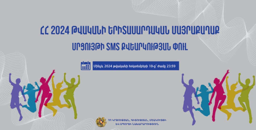 ՀՀ կրթության, գիտության, մշակույթի և սպորտի նախարարության «Հայաստանի Հանրապետության 2025 թվականի երիտասարդական մայրաքաղաք» մրցույթի կարճ հաղորդագրությամբ (SMS) քվեարկության փուլի մեկնարկը տրված է։