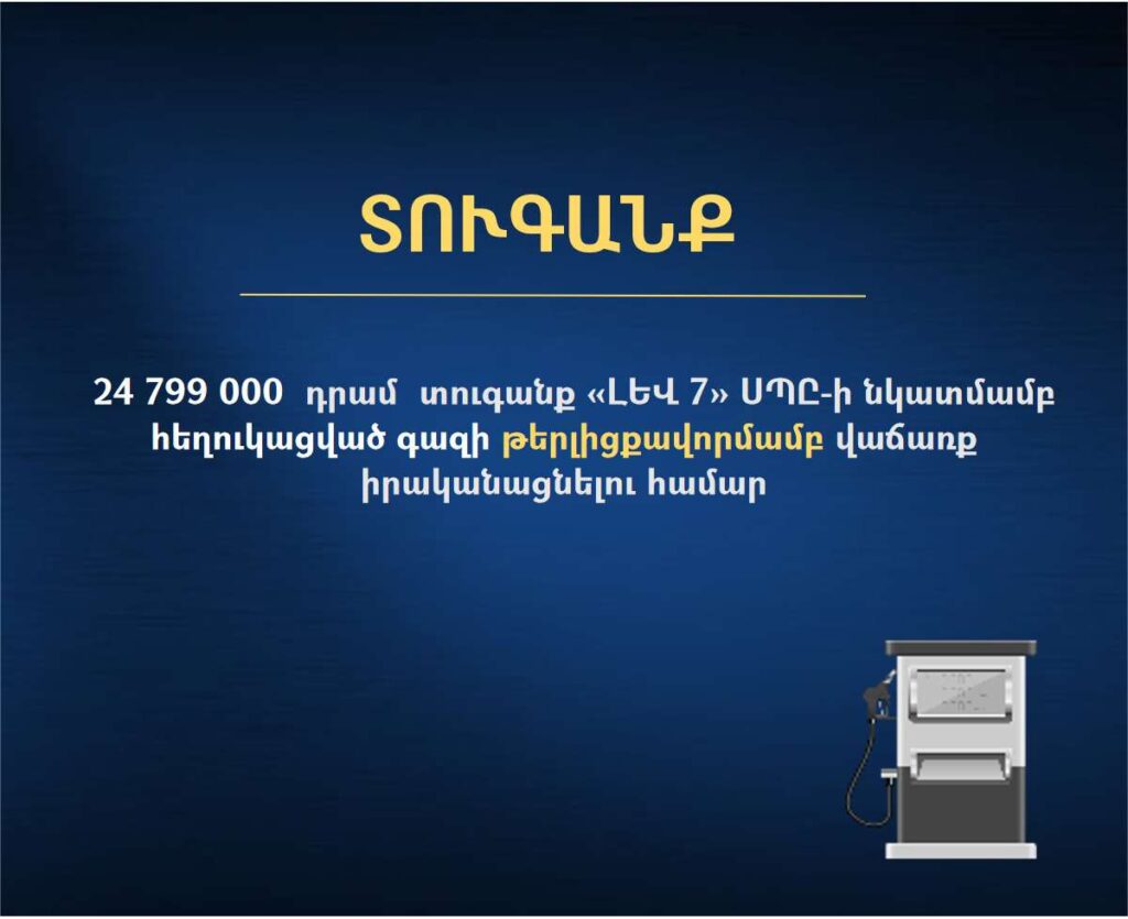 Մրցակցության պաշտպանության հանձնաժողովը 2024 թվականի հուլիսի 16-ի թիվ 421-Ա որոշմամբ հարուցել է վարույթ հեղուկացված գազի իրացման առնչությամբ «ԼԵՎ 7» ՍՊ ընկերության վարքագծում հասարակության մոլորեցման դրսևորմամբ անբարեխիղճ մրցակցության հատկանիշների առերևույթ առկայության հիմքով։