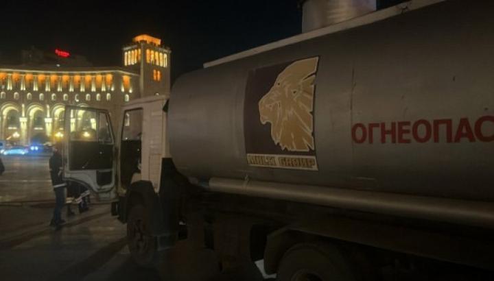 Նույն օրը՝ ժամը 23:11-ին, ահազանգ է ստացվել ՀՀ ՆԳՆ ՃՈ-ից այն մասին, որ անհայտ քաղաքացին բենզատար մեքենան կայանել է Հանրապետության Հրապարակի կենտրոնում, ապա՝ դիմել փախուստի: Միաժամանակ հաղորդում է ստացվել ոստիկանությունից առ այն, որ անհայտ քաղաքացին Երևան-Սևան մայրուղում գտնվող բենզալցակայանից առևանգել է անհայտ մակնիշի բենզատար և հեռացել անհայտ ուղղությամբ: