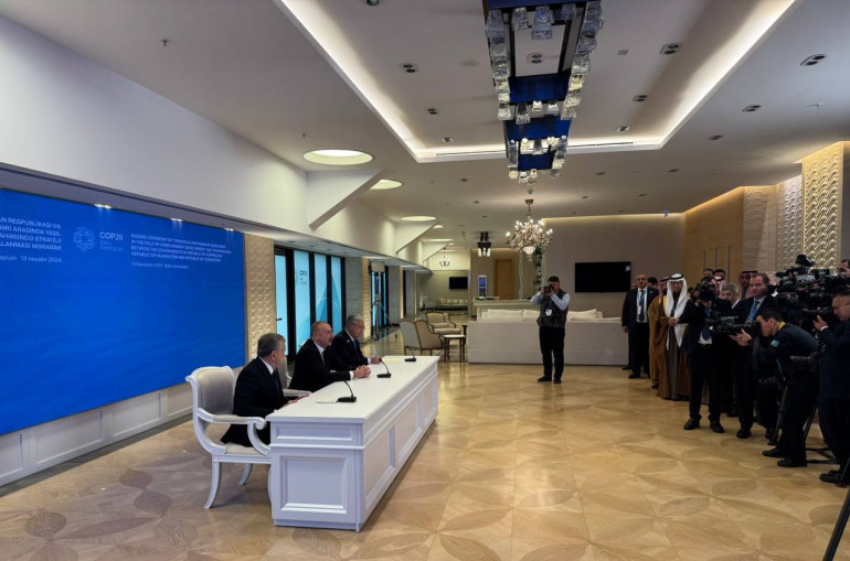 Բաքվում կայացել է Ադրբեջանի, Ղազախստանի և Ուզբեկստանի ղեկավարների հանդիպումը։ Դրա ընթացքում նախագահները համաձայնագիր են ստորագրել երեք երկրների կառավարությունների միջև Կասպից ծովի երկայնքով կանաչ էներգիայի զարգացման և փոխանցման գործում ռազմավարական գործընկերության մասին։