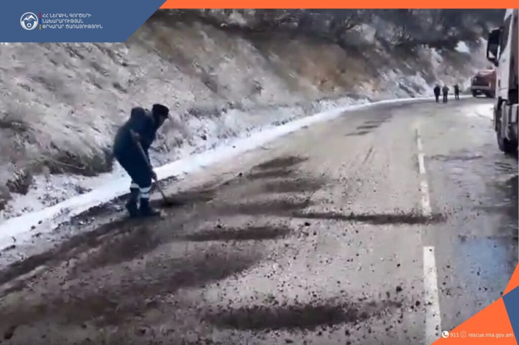 Փրկարարներն Աղվանի-Տաթև ավտոճանապարհի 1-ին կմ-ին իրականացրել են մերկասառույցի մշակման աշխատանքներ. խցանումից դուրս է եկել 103 տրանսպորտային միջոց. ավտոճանապարհը երկկողմանի երթևեկելի է: