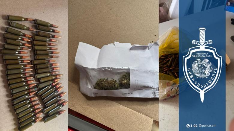 Ոստիկանները պահարանում հայտնաբերել են շուրջ 7 գրամ դեղնականաչավուն զանգվածով փաթեթ։ Տանտերը պահարանի տեսանելի հատվածից իրավապահներին է ներկայացրել նաև ապօրինի պահվող ինքնաձիգի 95 փամփուշտ։