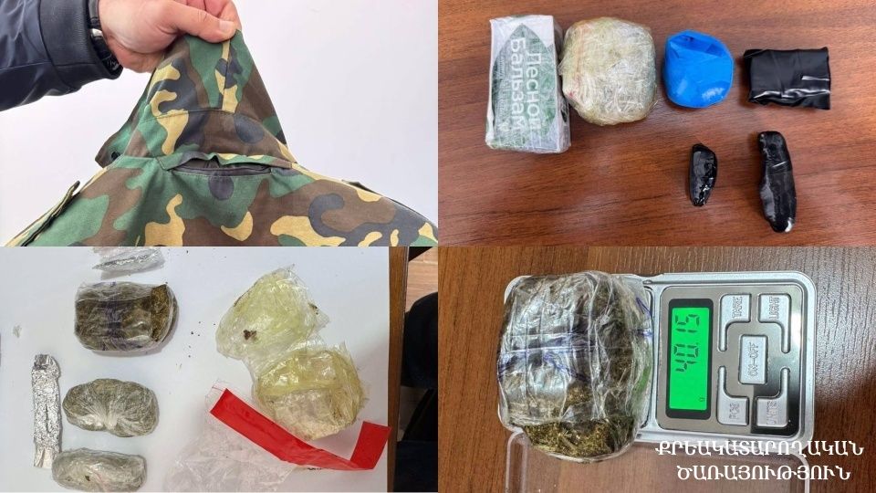 Արդյունքում՝ խուզարկություն իրականացնող ծառայողների աչալրջության շնորհիվ նույն հիմնարկի անվտանգության ապահովման բաժնի երրորդ կարգի մասնագետ Ա․ Պ․-ի համազգեստի պարանոցային հատվածում պատրաստված թաքստոցից հայտնաբերվել են կպչուն ժապավեններով փաթեթավորված, ընդհանուր 125,38 գրամ քաշով, տարբեր տեսակի թմրամիջոցների նմանվող զանգվածներ։