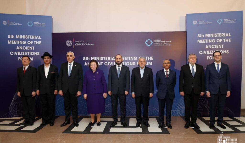 ՀՀ ԱԳ նախարար Արարատ Միրզոյանի նախագահությամբ Երևանում մեկնարկել է հնագույն քաղաքակրթությունների ֆորումի 8-րդ նախարարական հանդիպումը։ Հանդիպմանը մասնակցում են Հունաստանի մշակույթի նախարարը, Իրանի մշակութային ժառանգության, զբոսաշրջության և ձեռարվեստի նախարարը, Իրաքի ԱԳ նախարարի տեղակալը, Եգիպտոսի, Պերուի, Իտալիայի, Չինաստանի, Բոլիվիայի ներկայացուցիչներ։ Այս մասին տեղեկացնում են ՀՀ ԱԳՆ-ից: