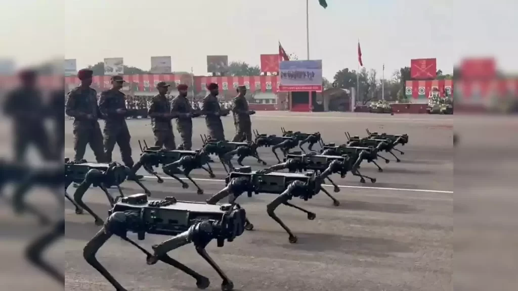 Հնդկական բանակը Պունեում ռազմական շքերթի ժամանակ ցուցադրել է ռոբոտ շների: Ամենագնաց ռոբոտները կարող են կրել զենք, գիշերային տեսողության և ջերմային տեսախցիկներ, անօդաչու թռչող սարքեր։