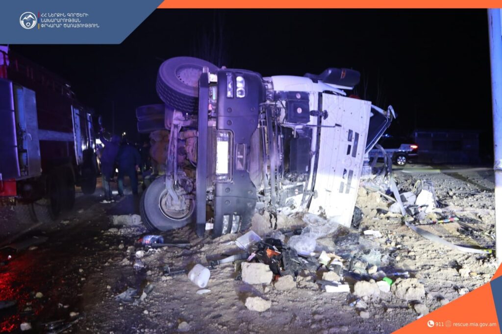 Հունվարի 21-ին, ժամը 22:08-ին Ճգնաժամային կառավարման ազգային կենտրոն ահազանգ է ստացվել, որ Արագածոտնի մարզի Ուշիի ոլորաններում բեռնատարը կողաշրջվել է, կան արգելափակված քաղաքացիներ․ անհրաժեշտ է փրկարարների օգնությունը։