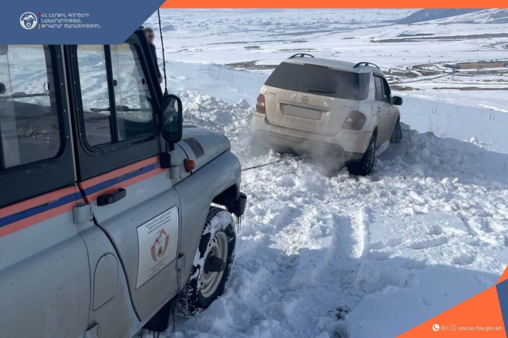 Փետրվարի 15-17-ը ՆԳՆ ՓԾ Վայոց ձորի, Արագածոտնի, Կոտայքի, Գեղարքունիքի, Լոռու և Սյունիքի մարզային փրկարարական վարչությունների ճգնաժամային կառավարման կենտրոններ ահազանգեր են ստացվել արգելափակված ավտոմեքենաների վերաբերյալ: