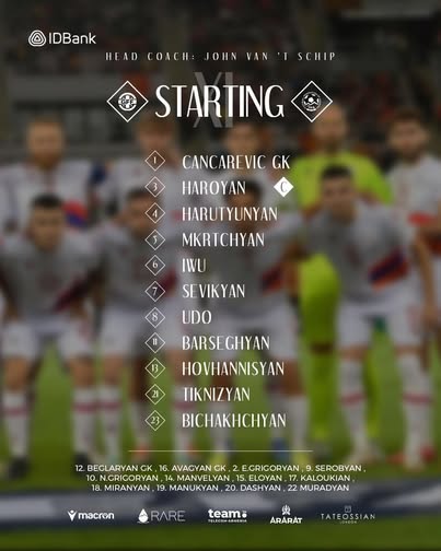 Ֆուտբոլի Հայաստանի հավաքականի հոլանդացի գլխավոր մարզիչ Ջոն վան’տ Սխիպը հրապարակել է մեկնարկային կազմը Վրաստանի թիմի դեմ Ազգերի լիգայի B դիվիզիոնի ուղեգրի համար անցումային փլեյ-օֆֆի պատասխան խաղում։