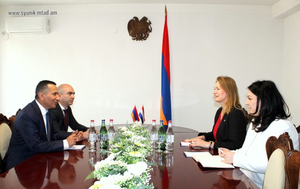 Սյունիքի մարզպետ Ռոբերտ Ղուկասյանն այսօր ընդունել է ՀՀ-ում Նիդերլանդների նորանշանակ արտակարգ և լիազոր դեսպան Մարիկե Մոնրոյ-Վինթերին, հայտնում են Սյունիքի մարզպետի աշխատակազմից։