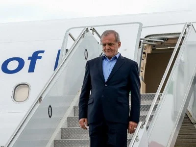 Իրանի Իսլամական Հանրապետությաննախագահ Մասուդ Փեզեշքիանը պաշտոնականայցով ժամանել է Ադրբեջան։ Ադրբեջանականլրատվամիջոցների փոխանցմամբ՝ Իրանինախագահին օդանավակայանում դիմավորել ենԱդրբեջանի առաջին փոխվարչապետ ՅաղուբԷյուբովը եւ այլ պաշտոնյաներ։