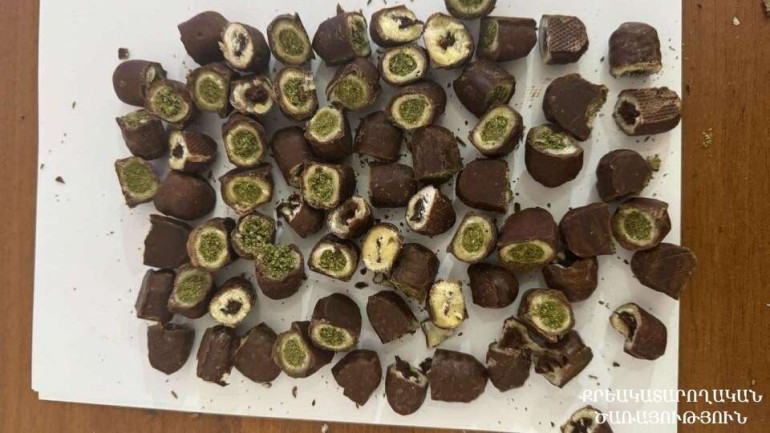 Հանձնուքում առկա շոկոլադե կոնֆետներից 45-ի միջից ծառայողները հայտնաբերել են մարիխուանա տեսակի թմրամիջոցին նմանվող, դեղնականաչավուն զանգվածներ, որոնց քաշը կոնֆետների հետ միասին կազմել է 264,94 գրամ։ Իսկ 27 կոնֆետի միջից հայտնաբերվել են թմրամիջոցի նմանվող, սպիտակ զանգվածներ, որոնց քաշը կոնֆետների հետ միասին կազմել է 142,95 գրամ։