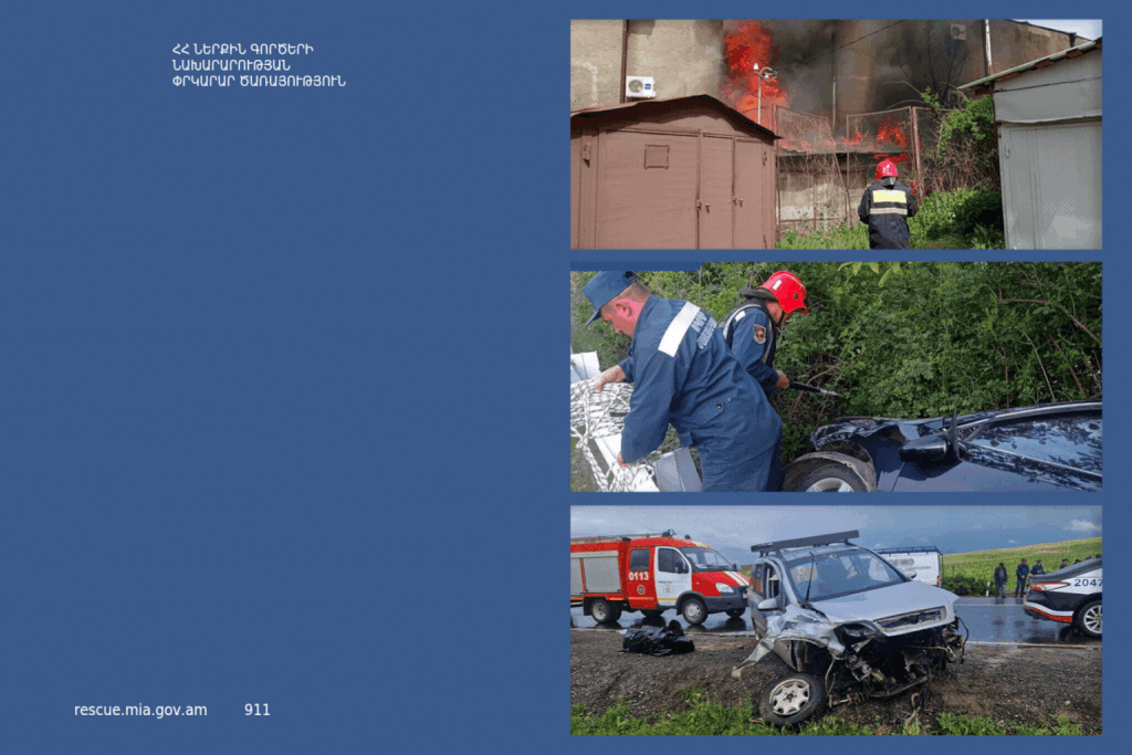 Մասնավորապես՝ հրդեհի՝ 45, փլուզման, երկրաշարժի, դարափուլի, ջրահեղձման, որոնողափրկարարական՝ 1-ական, պայթյունի, կենսաապահովման կոմունալ համակարգերում վթարի, տեղատարափ անձրևի, դժբախտ պատահարի՝ 2-ական, քարաթափման, վայրի կենդանիների հարձակման՝ 3-ական, ուժեղ կարկուտի՝ 6, թունավորման՝ 10, օձի նկատման՝ 25, կեղծ ահազանգի՝ 8, ուժեղ քամու՝ 7, ինքնասպանության փորձի՝ 14, ճանապարհատրանսպորտային պատահարի՝ 54, ինչպես նաև՝ կենցաղային կանչի՝ 177, հրդեհի ծագման սպառնալիքի՝ 44, հրդեհի կեղծ կանչի՝ 26, 95 այլ դեպքեր: