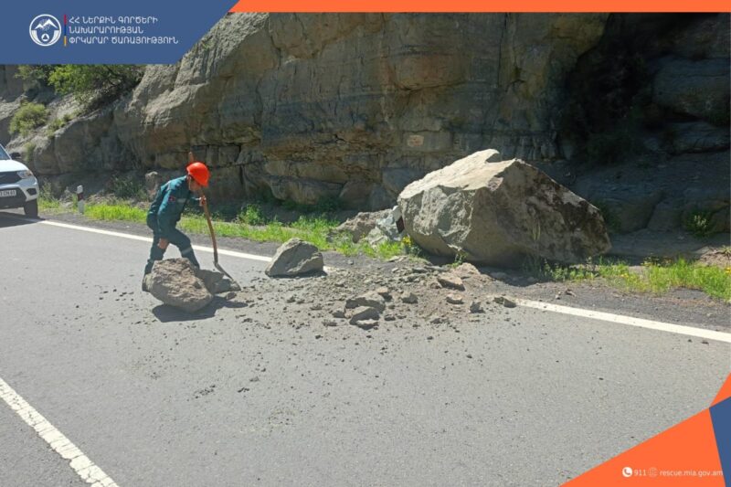 Փրկարարների և ոստիկանության պարեկային ծառայության աշխատակիցների կողմից հեռացվել են ճանապարհի երթևեկելի հատվածում գտնվող քարերը։