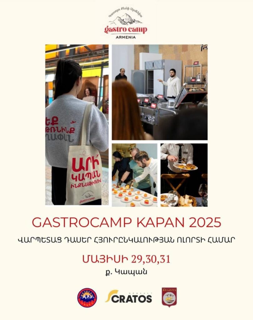 Մեկնարկում են GastroCamp Kapan 2025 նախագծի եզրափակիչ միջոցառումները: Մայիսի 29-31-ը կազմակերպվելու են ինտենսիվ դասընթացներ և գործնական պարապունքներ HoReCa (հյուրանոցային, ռեստորանային, սրճարանային) անձնակազմի և ոլորտով հետաքրքրված անձանց համար։