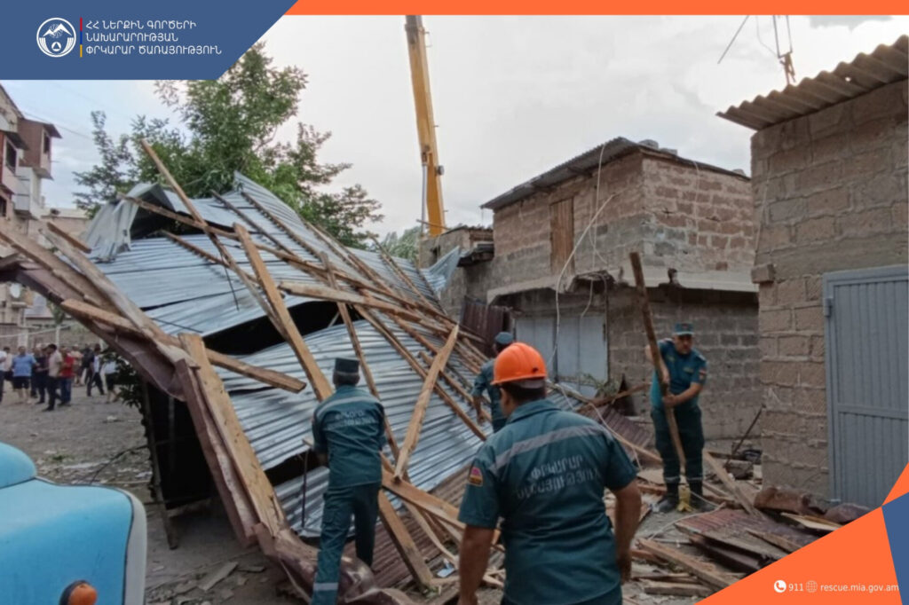 Ահազանգով դեպքի վայր մեկնած փրկարարներն իրականացրել են մոտ 500 ք.մ. մակերեսով տանիքի, ինչպես նաև երկու շենքի շուրջ 60մ երկաթե ճաղավանդակների ապամոնտաժման աշխատանքներ։ Փրկարարների օպերատիվ գործողությունների արդյունքում վերացվել է վթարավտանգ իրավիճակը։