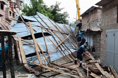 Արարատի մարզի Արարատ քաղաքում փրկարարական ստոաբաժանումների կողմց իրականացվել են տան տանիքի ամրացման աշխատանքներ։
